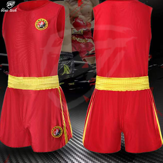 Camiseta de boxeo de poliéster personalizada, conjunto de chaleco, uniforme de boxeo de Pakistán, pantalones cortos de poliéster de alta calidad, uniformes de Wushu Sanda