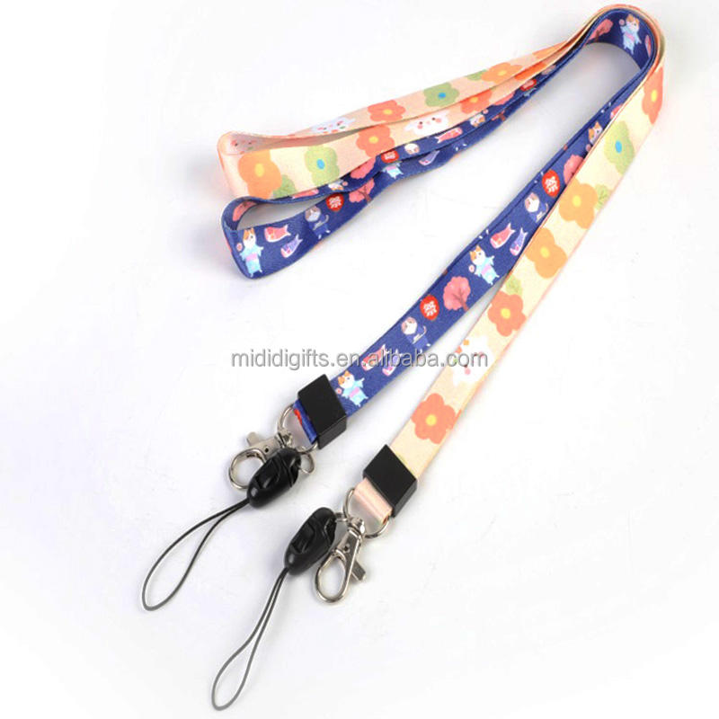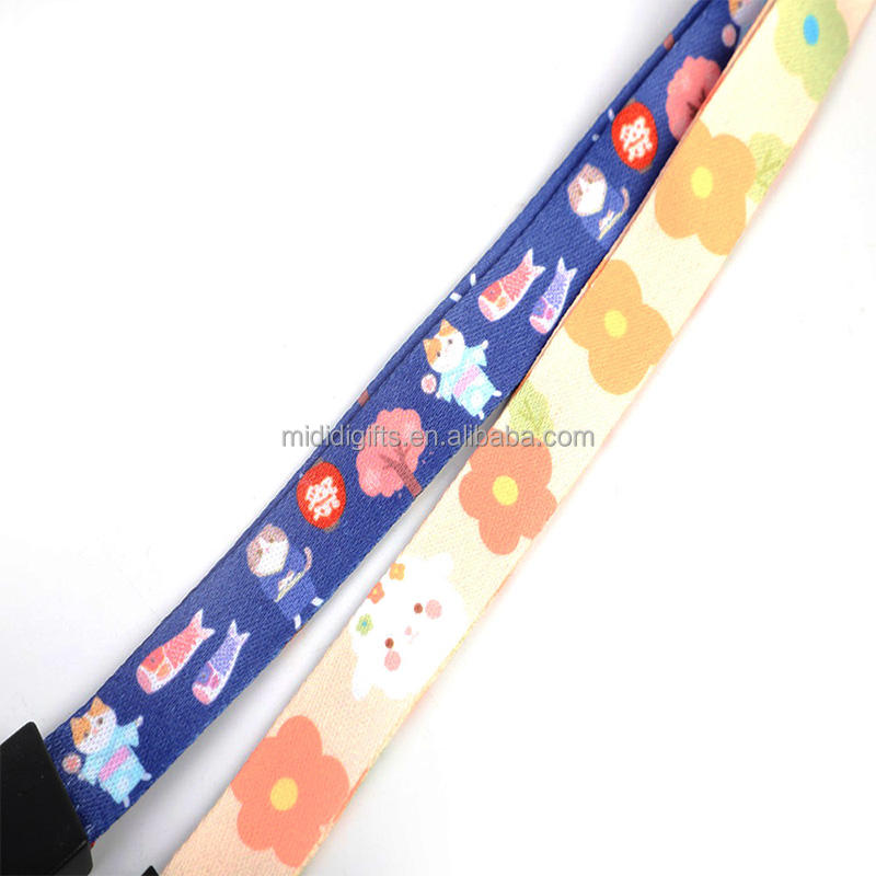 Cordones de poliéster personalizados Impresión a todo color Correas para el cuello con logotipo Llavero personalizado con tarjeteros Fábrica de aprobación de Disney