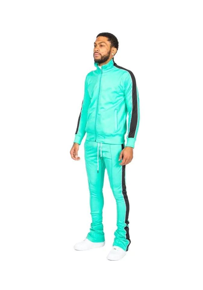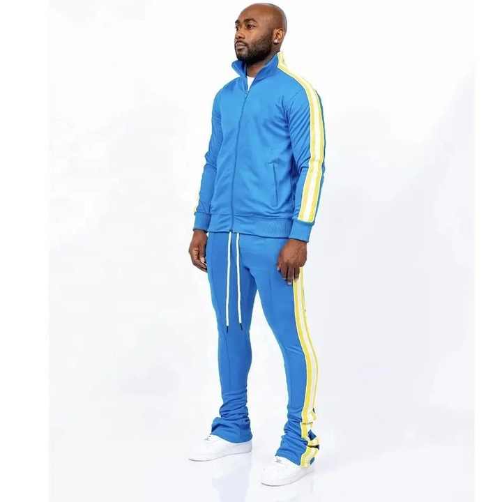 Pantalones de chándal apilados con rayas laterales de poliéster personalizados Conjuntos de Jogger Chándales apilados con cremallera para hombre