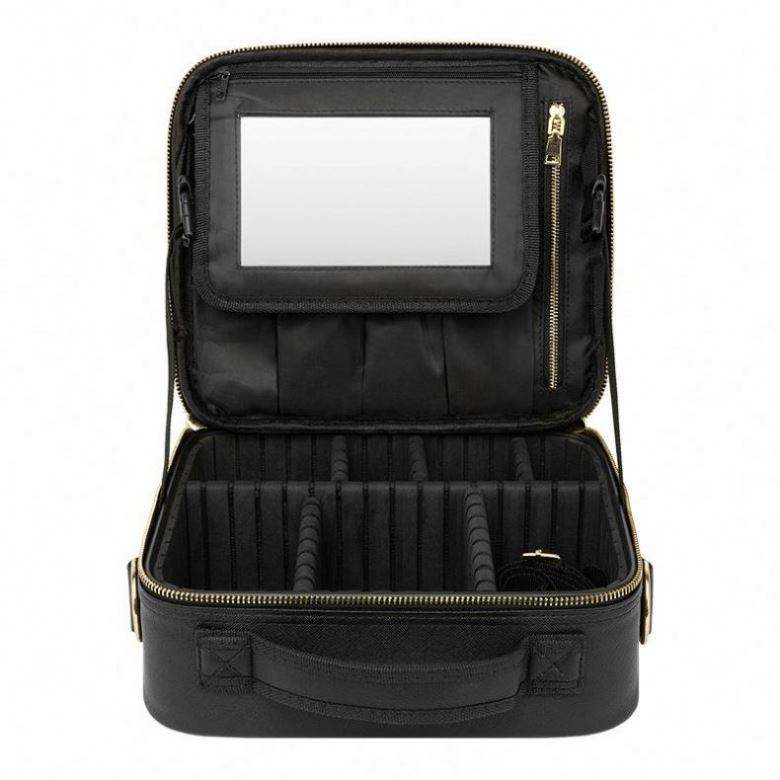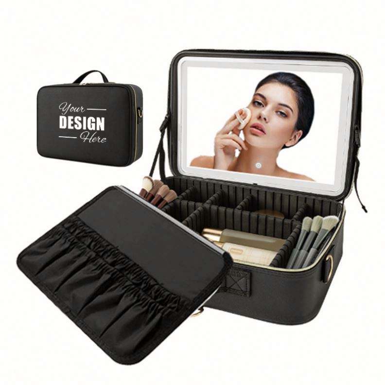 Bolsa de Maquillaje de Viaje Personalizada de Poliéster con Cierre de Cremallera y Espejo LED - Organizador de 14.6''x10.3'' con 3 Niveles de Brillo, Estuche Cosmético Grande