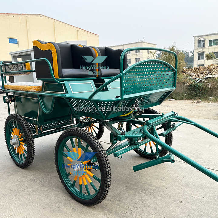 Carruaje de caballos de cuatro ruedas dibujado en poni verde personalizado Carro de caballos de maratón especial