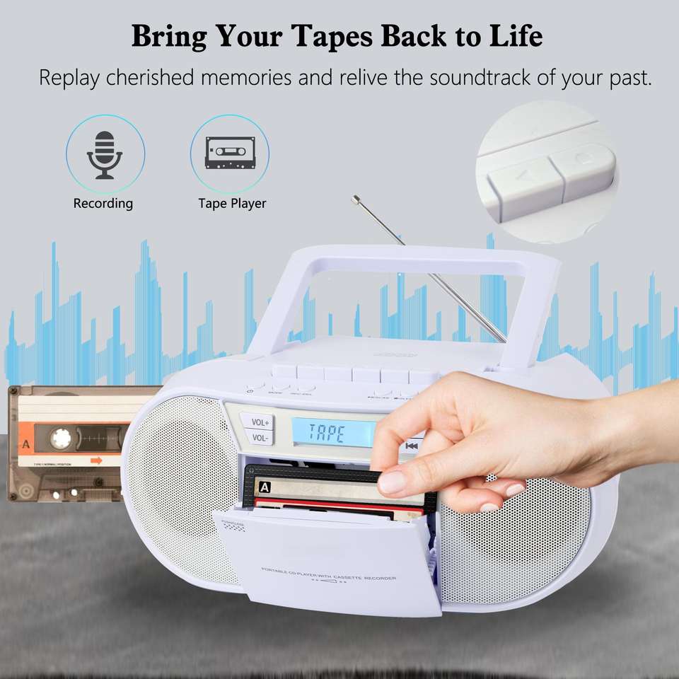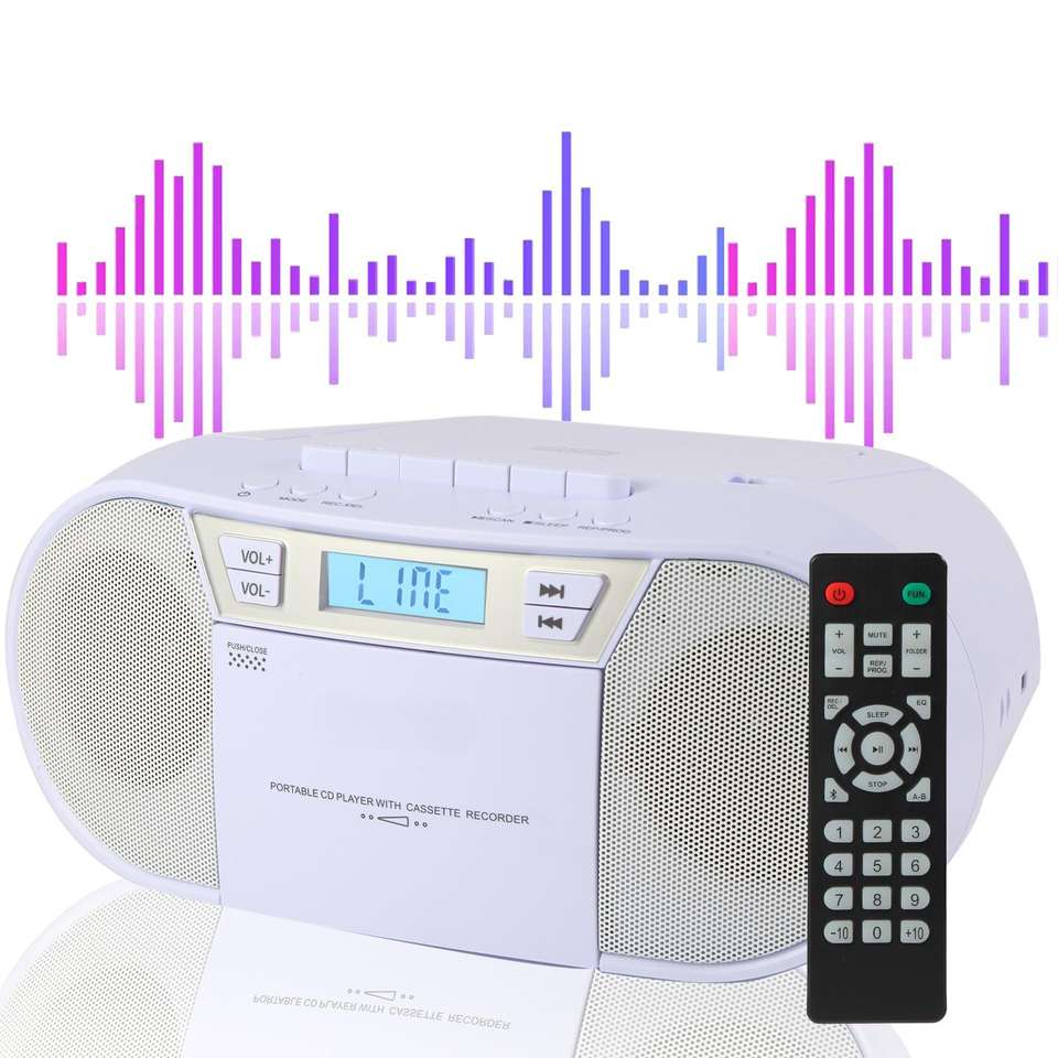 Reproductor de CD Portátil Personalizado con Grabador de Casetes, Control Remoto, Radio FM y Reproductor de Audio BT