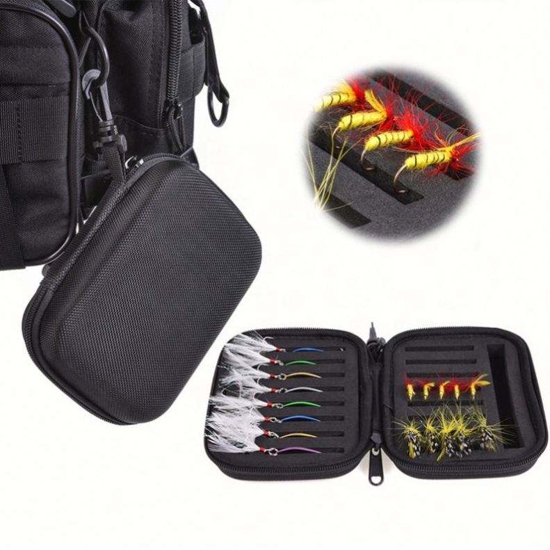 Estuche Portátil Personalizado para Señuelos de Pesca con Mosca, Caja de Espuma para Spinner Bait, Moscas para Trucha, Anzuelos, Estuche Rígido de EVA, Bolsa de Almacenamiento Negra