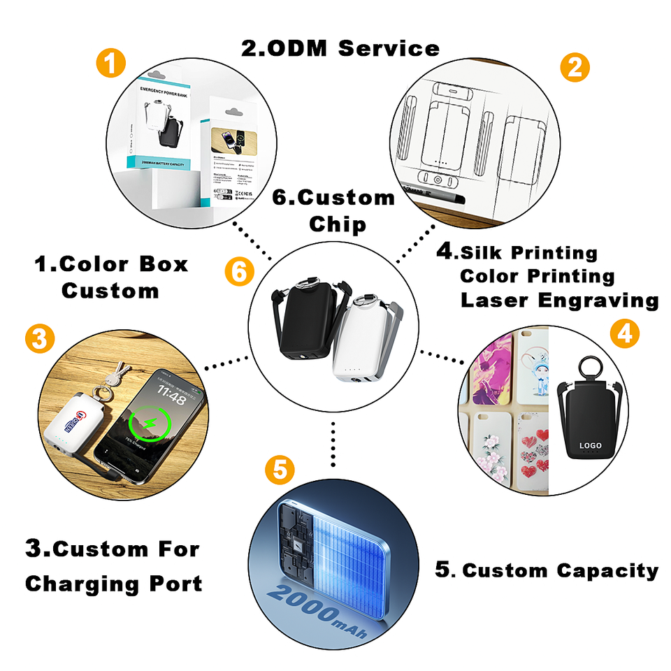 Cargador de Teléfono Portátil Personalizado con Llavero, Mini Banco de Energía Móvil de 2000 mAh/4000 mAh, Salida de 10 W, Linterna de Emergencia Incluida