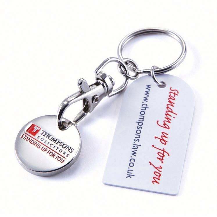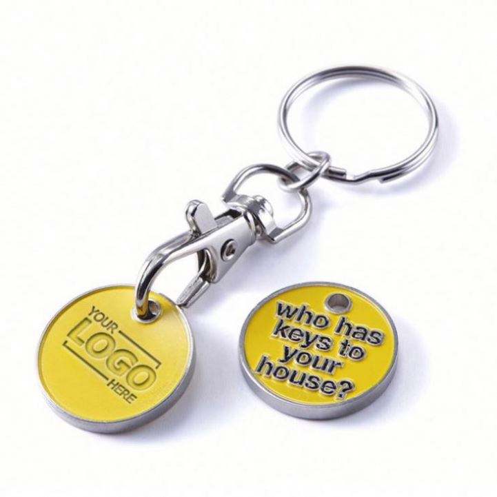 Llaveros Metálicos Personalizados con Forma de Carrito de Compras - Estilo Floral, Grabado con Logotipo Impreso en Letterpress para Promoción