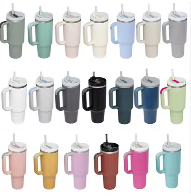 Vaso Térmico Personalizado de Doble Pared con Recubrimiento en Polvo, 40 oz, con Asa, Aislado para Bebidas Frías y Calientes, de Acero Inoxidable, con Pajita