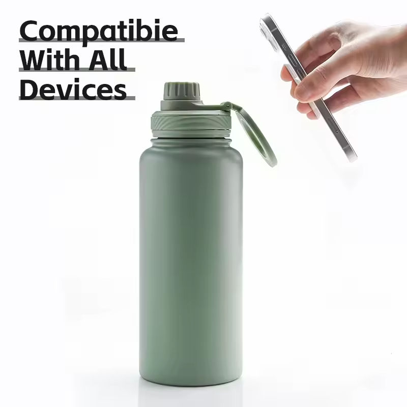 Botella de agua magnética de acero inoxidable con aislamiento al vacío de doble pared con recubrimiento en polvo personalizado, frasco de bicicleta deportiva para gimnasio de boca ancha