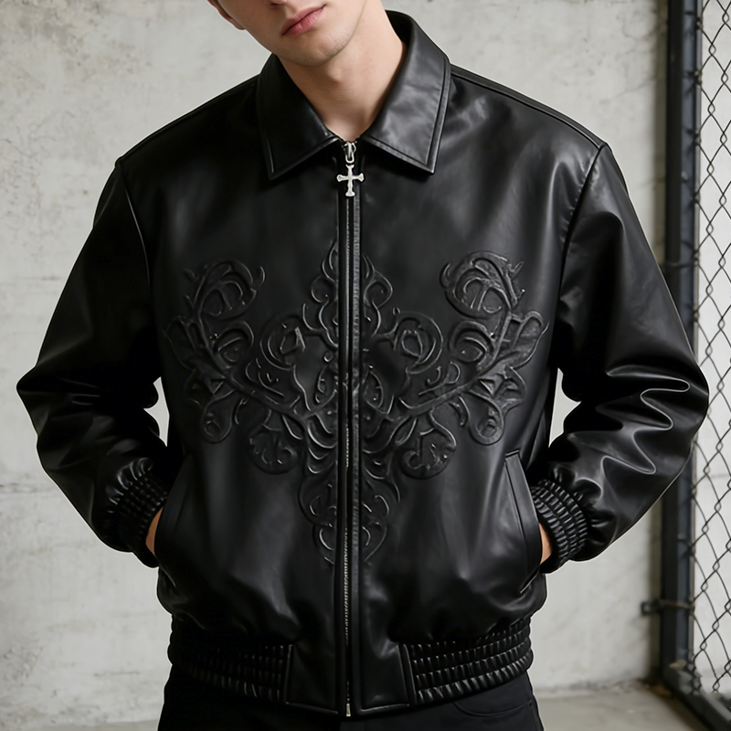 Chaqueta genuina OEM personalizable de alta calidad, bomber de PU con relieve y cremallera — chaqueta de cuero estampada para hombre para motociclismo y competición