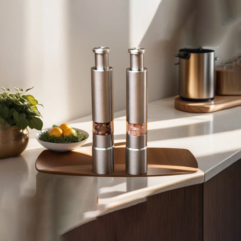 Molinillo de especias y sal y pimienta de acero inoxidable moderno Premium personalizado, Molinillo, utensilios de cocina, botón pulsador