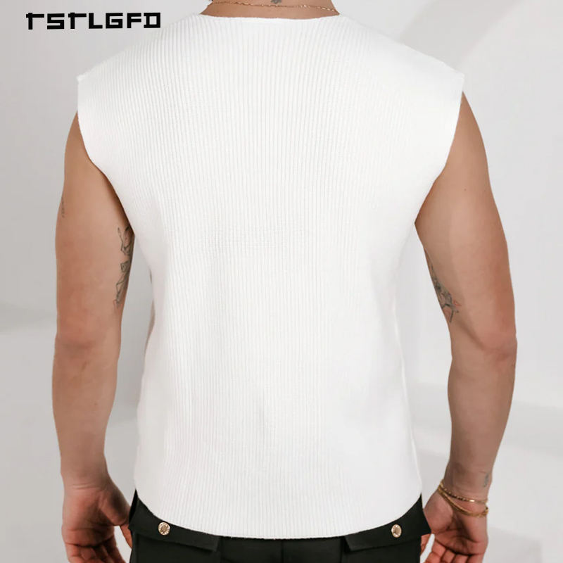 Chaleco de Punto Personalizado Premium para Hombre, Corte Ajustado, Sin Mangas, Color Blanco Sólido