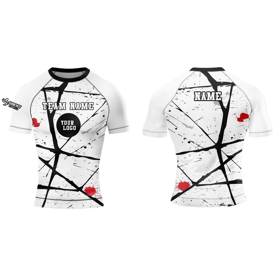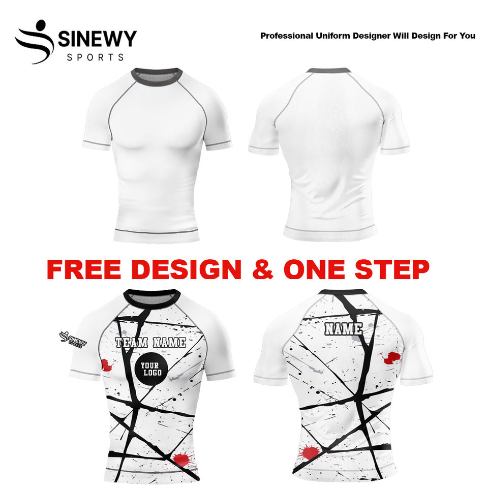 Personalizado de calidad superior de los hombres de manga corta MMA Rash Guard hecho de poliéster/Material de nylon Rash Guards Venta caliente