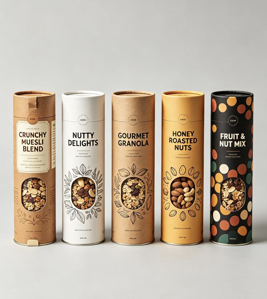 Tubo de Papel Texturizado Premium Personalizado para Almacenamiento de Aperitivos Secos y Frutos Secos