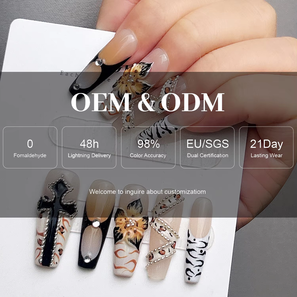 Uñas Postizas Personalizadas Negras con Accesorios, Estilo Stiletto, Decoración en Relieve 3D, de Lujo para Chicas, para Festivales, Venta al Por Mayor