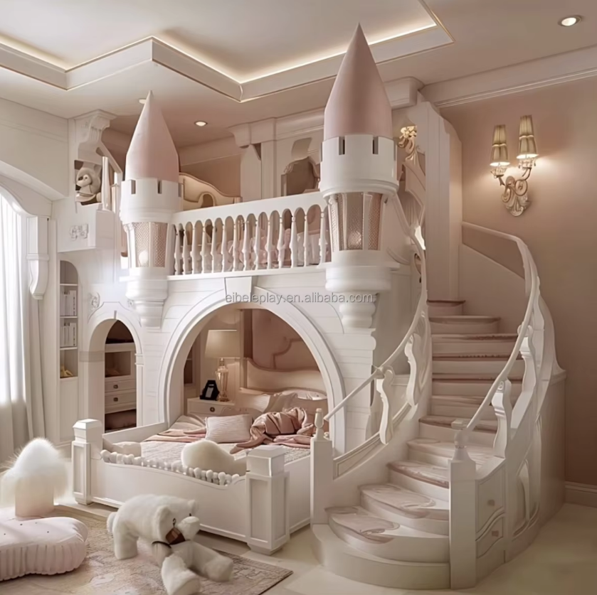 Cama litera personalizada con diseño de castillo de princesa, cama tipo bunker de lujo, camas literas rosas, juego de muebles de dormitorio para niñas