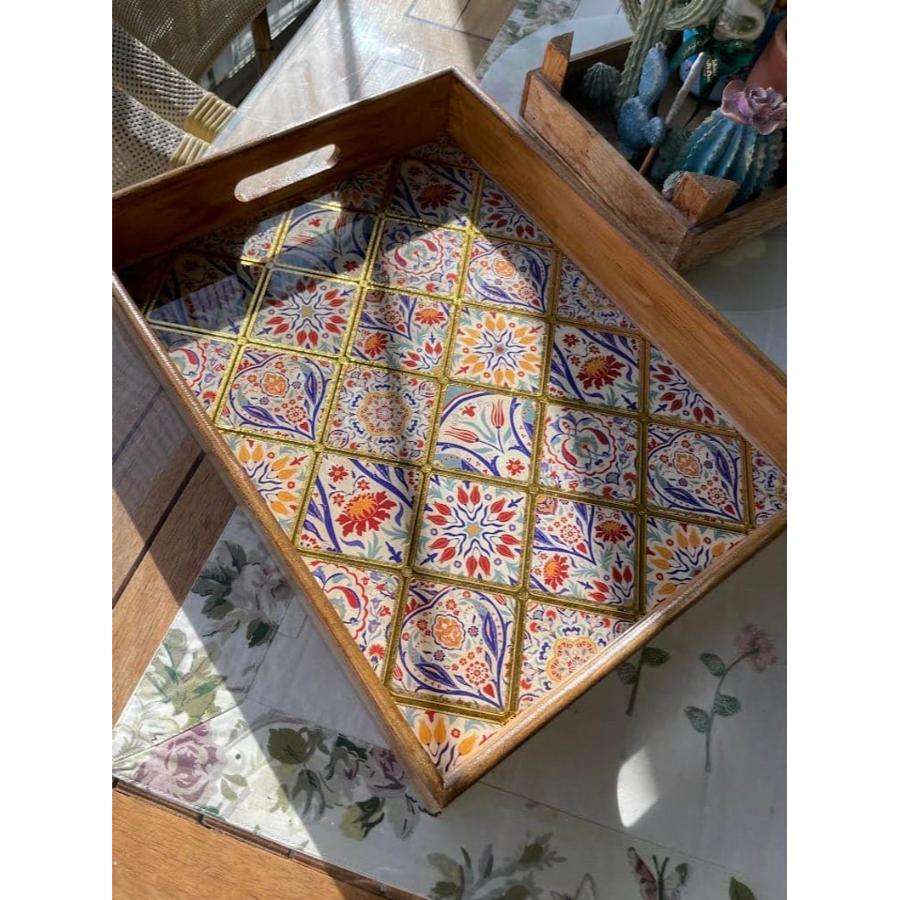Keyword:Enamel Printed Serving Wood Tray
