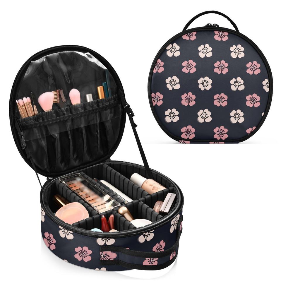 Bolsa de Maquillaje con Diseño de Flores Negras, Personalizada, Estuche de Viaje para Cosméticos, Organizador de Brochas de Maquillaje, Estuche Profesional para Maquilladores