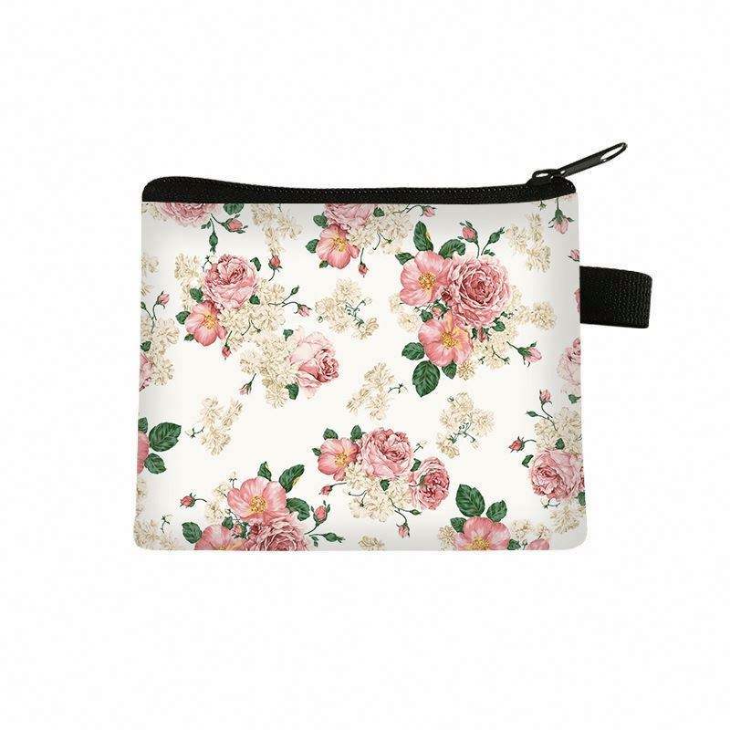 Monedero Personalizado con Estampado de Flores para Estudiantes, Bolsa de Almacenamiento de Monedas de Poliéster