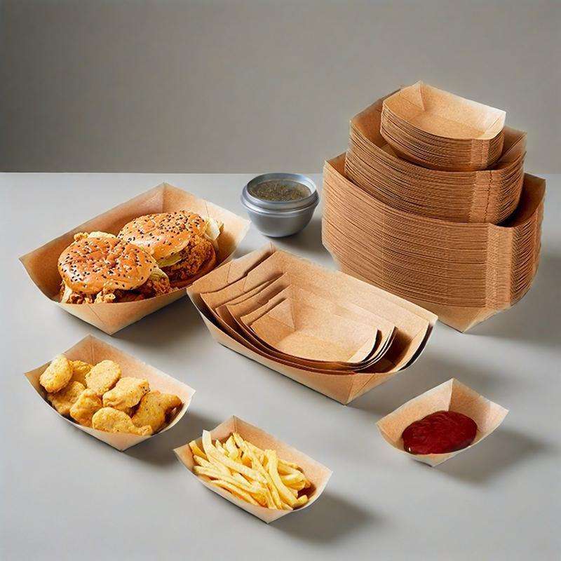 Bandeja de Comida Desechable con Impresión Personalizada, Contenedor de Papel Reciclable para Papas Fritas, Ensaladas, Material de Grado Alimenticio