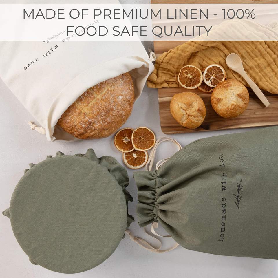 Impresión personalizada Eco Reutilizable Pan Proofing Cover Cordón Limpio Almacenamiento Lino Bolsa de pan