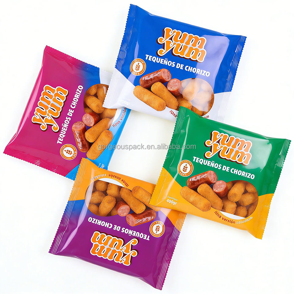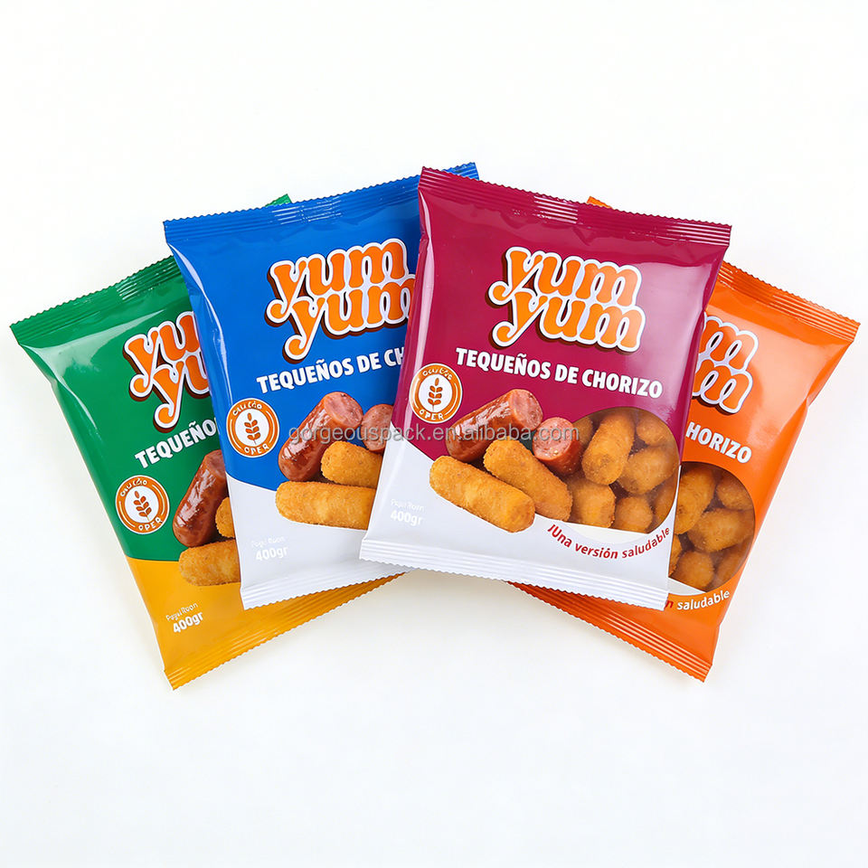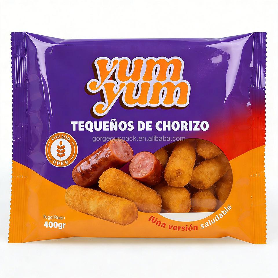 Bolsa de Plástico para Alimentos con Cierre Trasero y Ventana, Personalizada, de Grado Alimenticio, para Snacks, Papas Fritas, Papas Fritas Congeladas