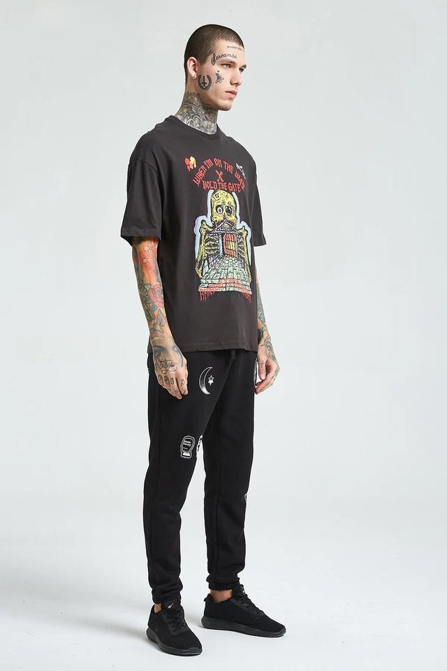 Camiseta Oversize Negra con Estampado Personalizado para Hombre, Estilo Hip Hop, Ecológica, con Etiquetas, Poliéster/Algodón
