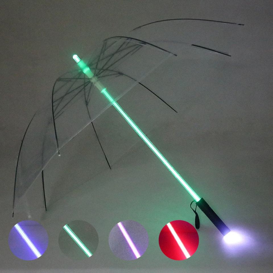 Paraguas Personalizado con LED, Recto, Transparente, Resistente al Viento, de Pongee 190T, Todo en Uno, Apertura Semiautomática para Viajes, Eventos al Aire Libre y Nocturnos