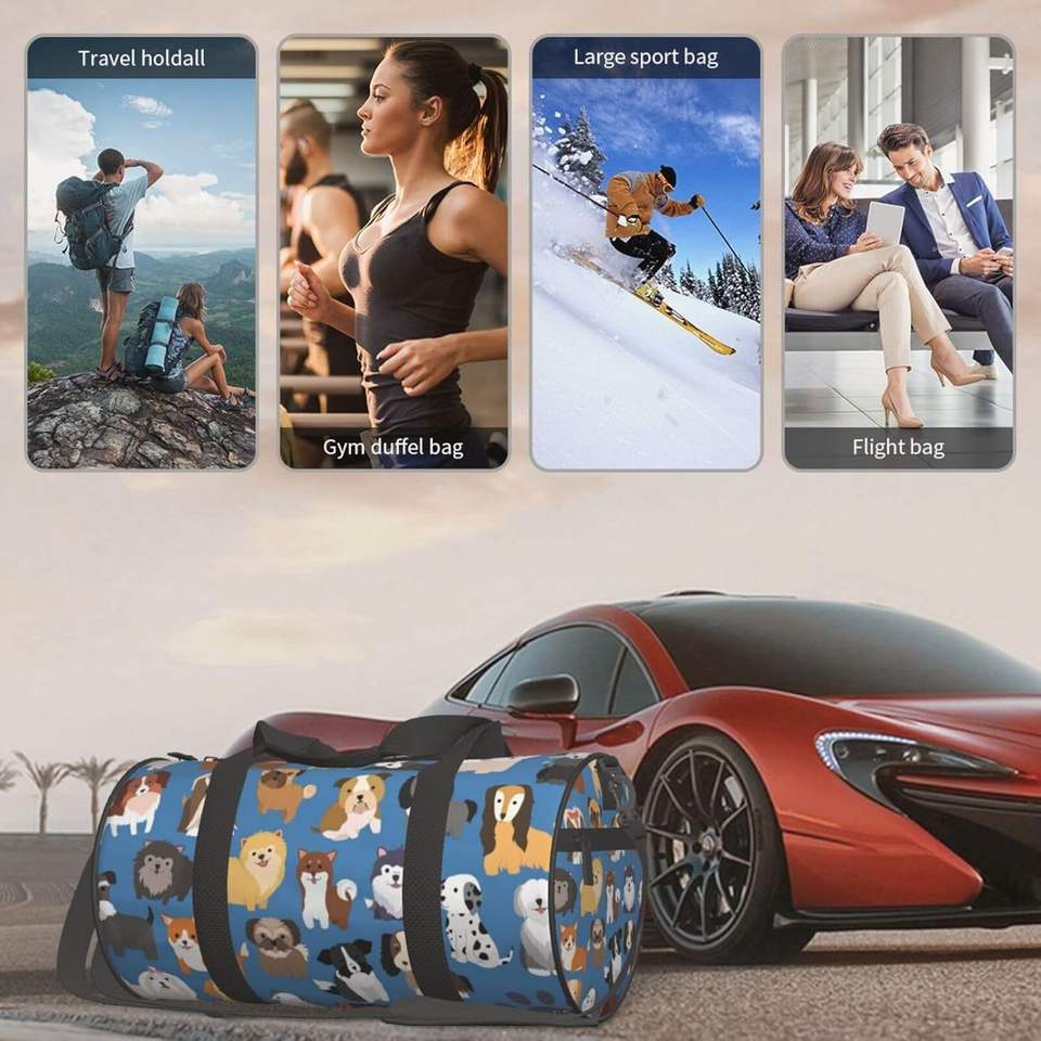 Bolsa de viaje de gran capacidad con estampado personalizado para mujer, bolsa de deporte impermeable para mujer, bolsa de lona rosa para gimnasio