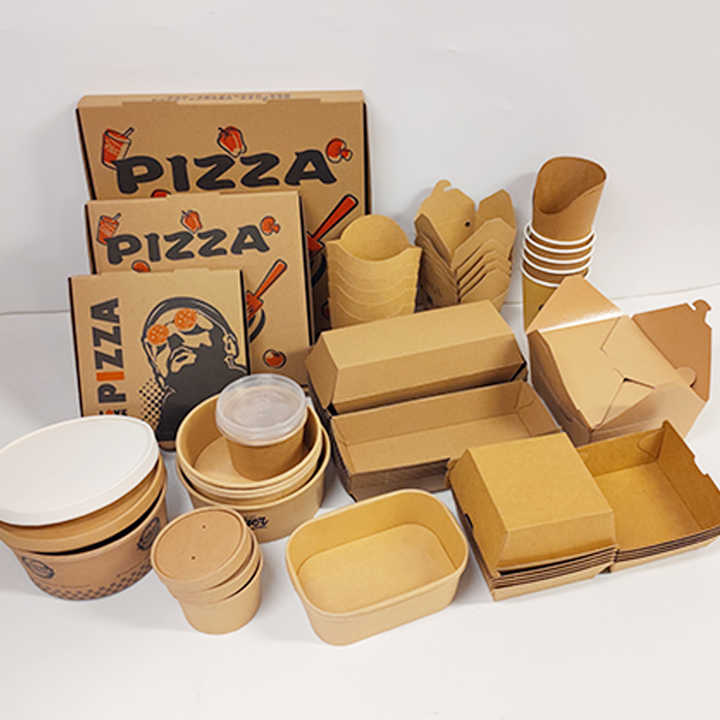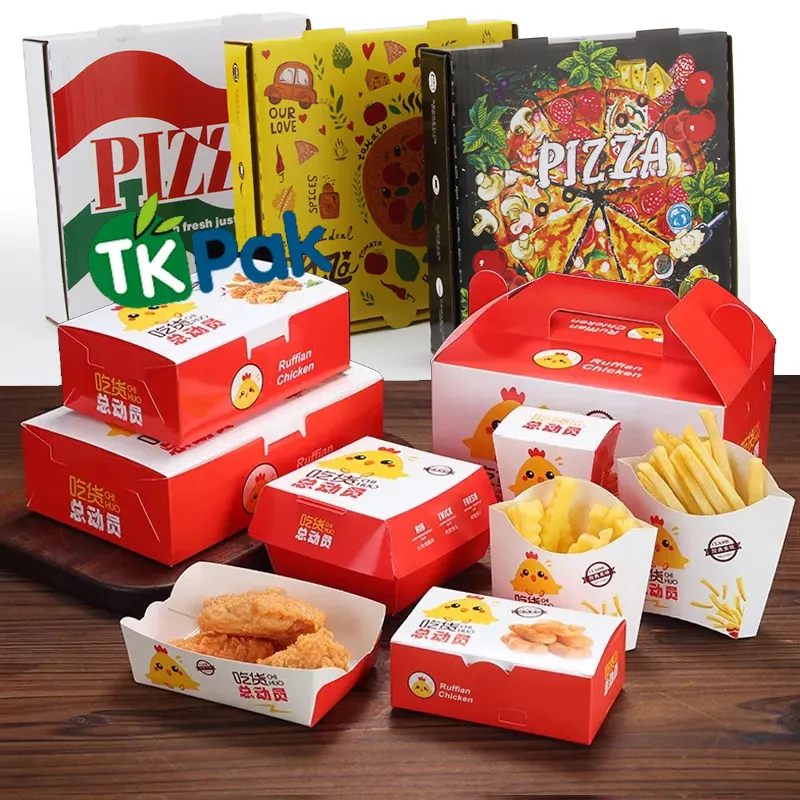 Logotipo de impresión personalizada pollo frito pescado y patatas fritas hamburguesa bandeja para perros calientes Kraft Catering Pizza papel de embalaje caja de comida para llevar