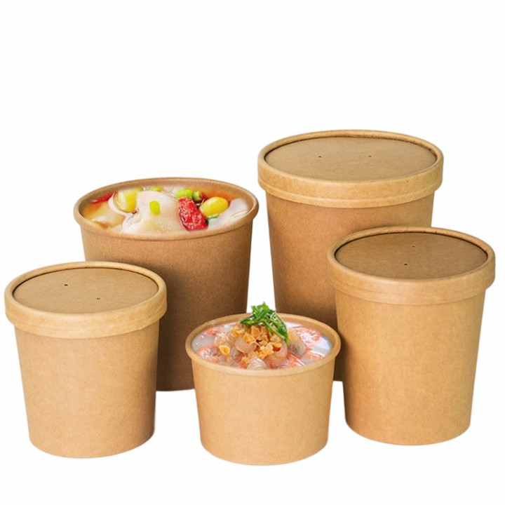 Tazón Redondo de Papel para Almuerzo con Impresión Personalizada, Desechable, 24oz, para Sopa y Ensalada con Tapa, Papel Kraft, para Fiestas, BIOPACK BOWL-001