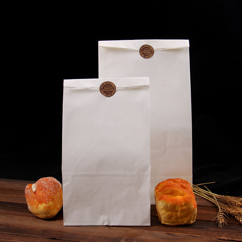 Impresión personalizada reciclada blanca restaurante comida para llevar bolsa de papel para llevar bolsas de papel Kraft sin asas con su propio logotipo