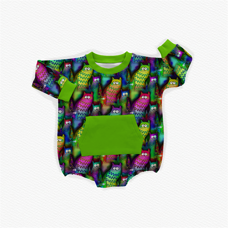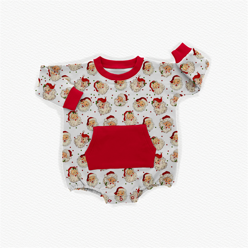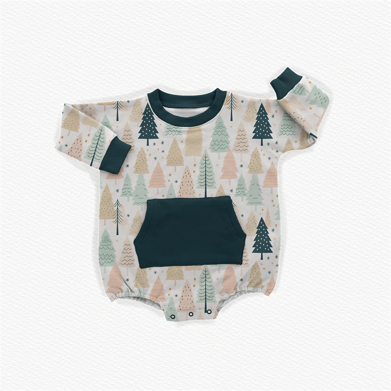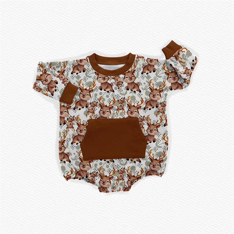 Mameluco de rizo de bambú con cuello redondo y estampado personalizado, mono de bebé de rizo con botones a presión de manga larga para recién nacidos