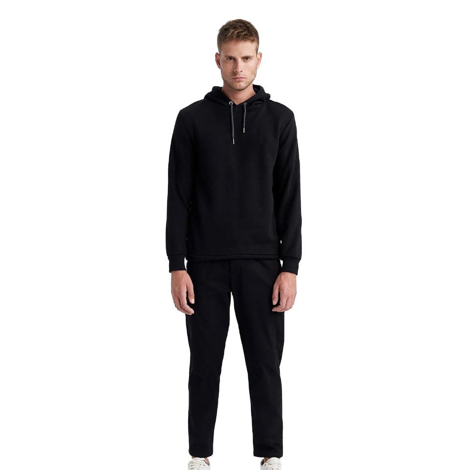 Sudadera con Capucha Personalizada con Estampado Sólido, 100% Algodón Negro para Hombre, Sudadera de Invierno con Forro Polar, Diseño con Bolsillos, Secado Rápido