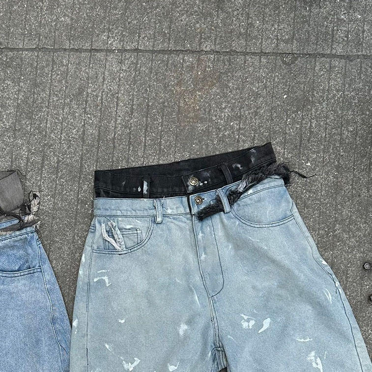 Vaqueros de hombre personalizados con estampado de pedrería, estilo vintage, holgados, con cordones dobles en la cintura, estilo urbano, 100% denim.