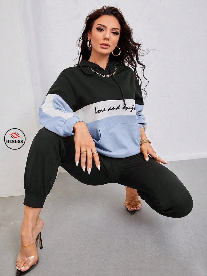 Sudadera deportiva para correr con estampado personalizado de 100% algodón, Sudadera con capucha y pantalón de peso pesado para mujer, conjunto de sudaderas con capucha para mujer de alta calidad
