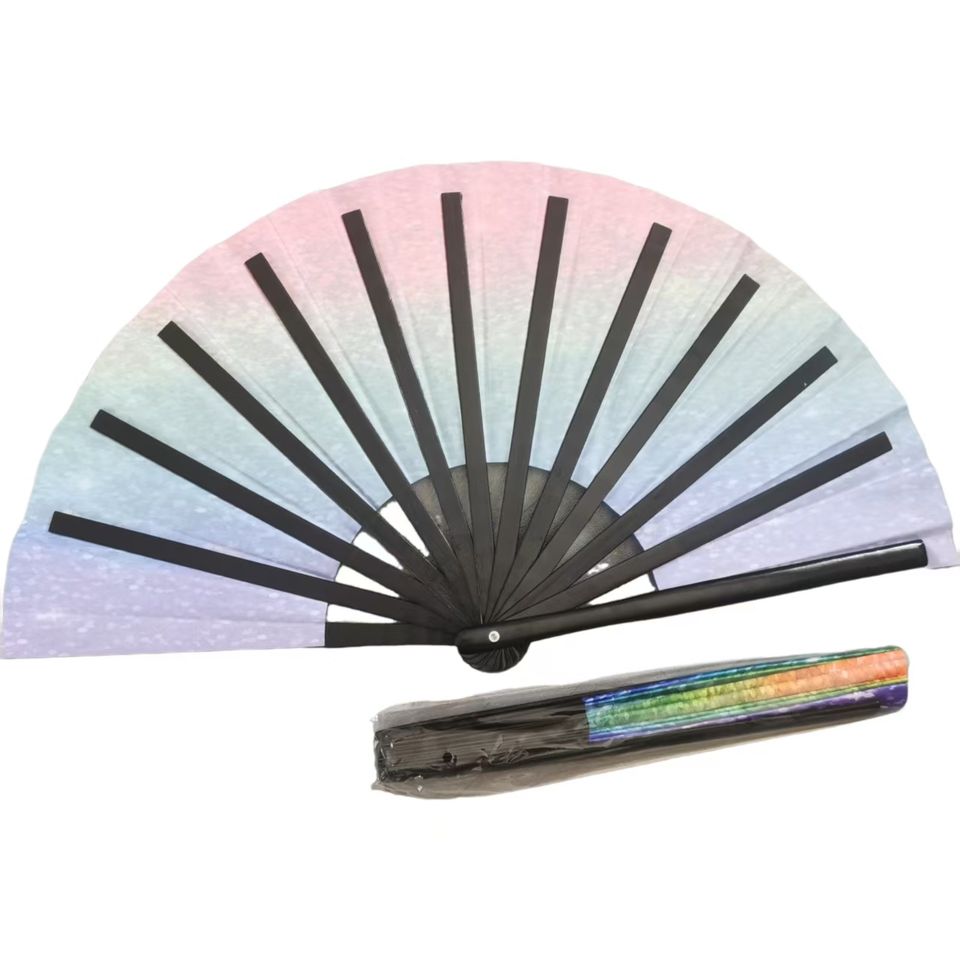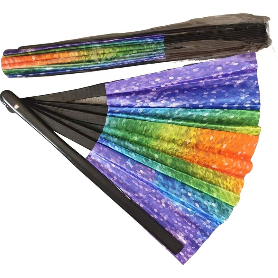 Abanico plegable de plástico Kung Fu de 13 pulgadas con impresión personalizada, abanico de mano barato disponible para festivales y fiestas LGBT del Orgullo Gay