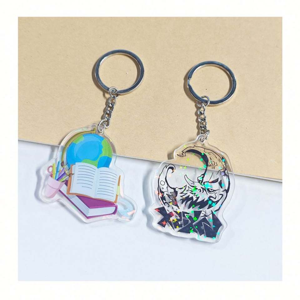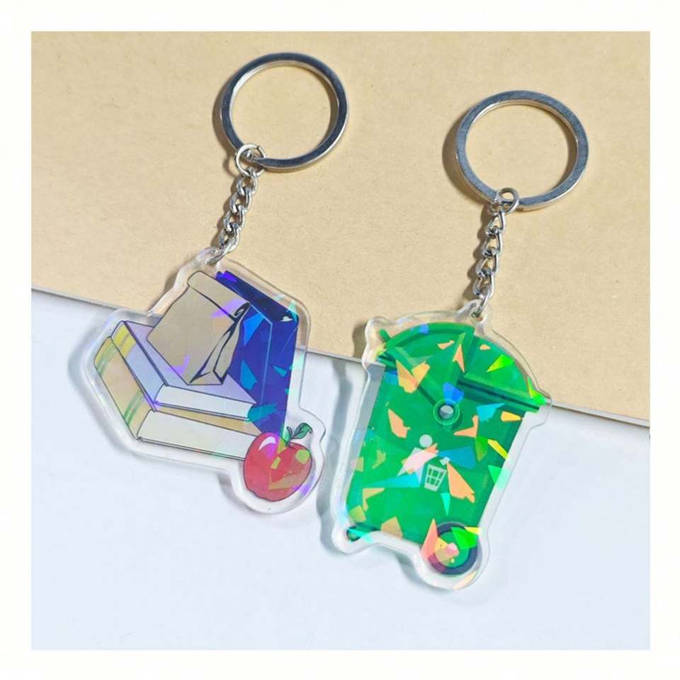Custom Printed Anime Keychain Design Glitter Epoxy/Hologram Laser Cut Engraved Acrylic Charm Offset Printing on Resin & Alloy