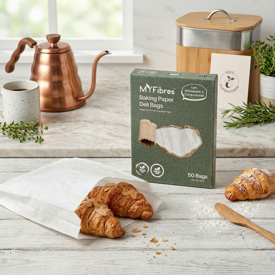 Bolsa de papel antigrasa para alimentos, bolsa de papel para llevar croissants, bolsa de papel para hornear, bolsa de papel para delicatessen, 16 x 22 cm, 30 unidades