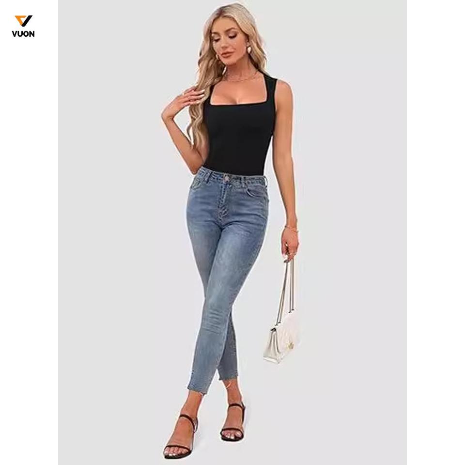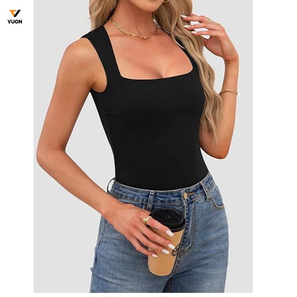 Camisola básica con estampado personalizado de color sólido para mujer, camisola ajustable con cuello redondo y doble forro, camisetas sin mangas de verano para mujer