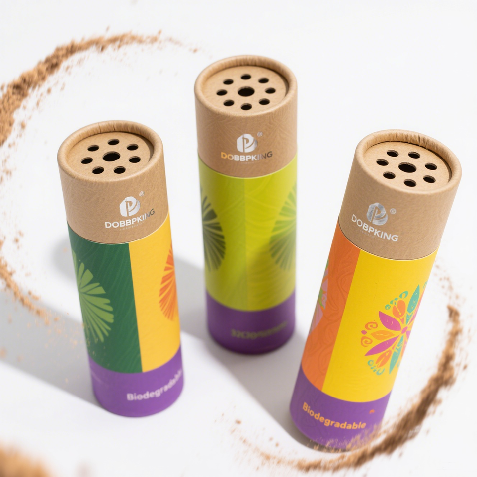 Empaquetado de tubo de condimento de polvo seco de papel Kraft Premium biodegradable impreso personalizado con parte superior de coctelera