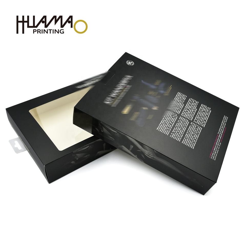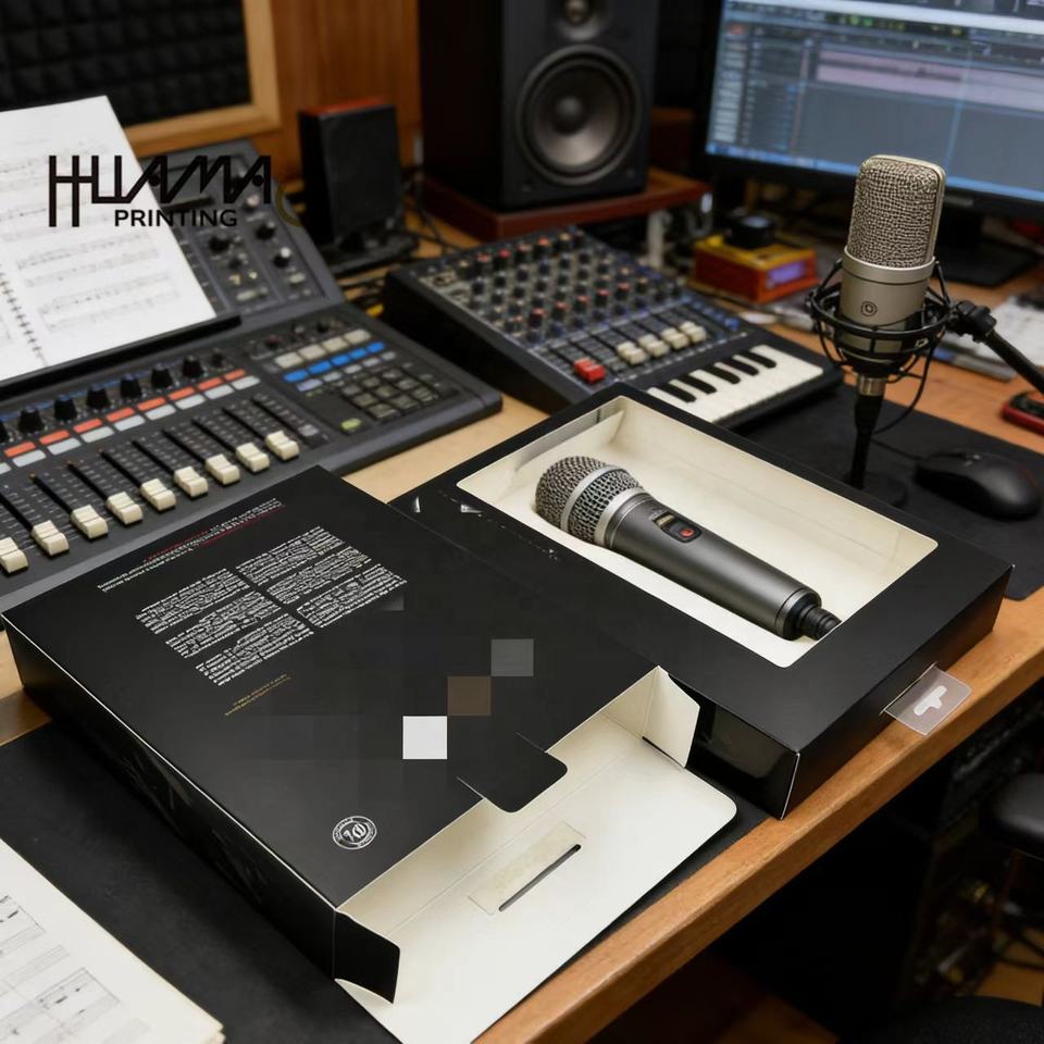 Caja de ventana negra impresa personalizada, embalaje premium para micrófonos, auriculares y dispositivos electrónicos, caja de regalo con logotipo personalizado