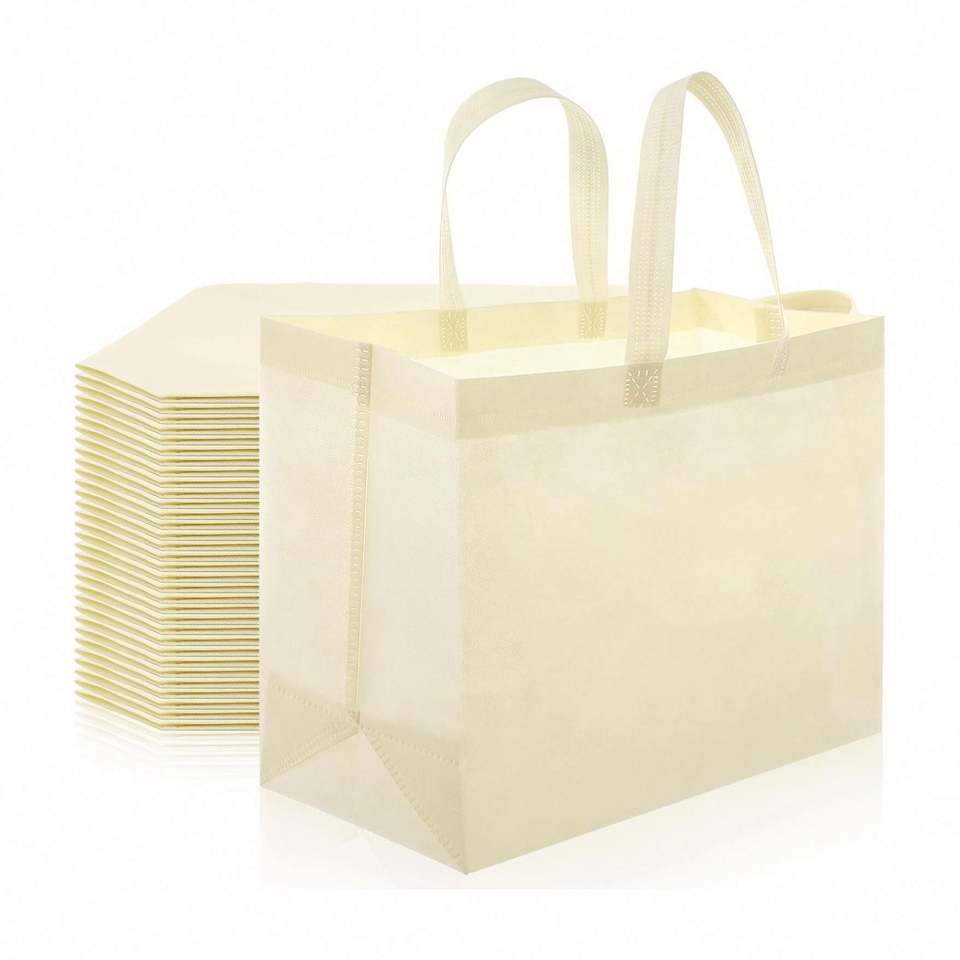 Bolsa de Compras Reutilizable Personalizada para Tiendas Boutique, Bolsa de Tela Grande Beige, Bolsa de Compras de Tela No Tejida, Bolsa de Supermercado Rpet
