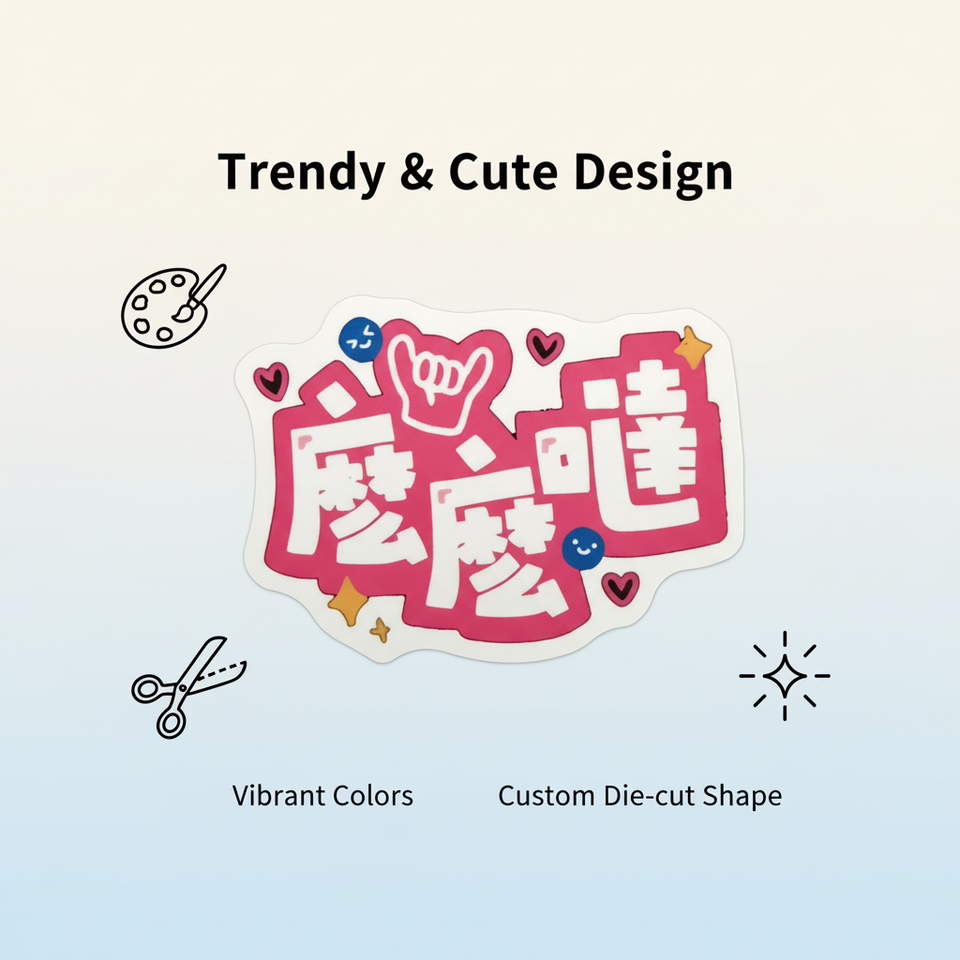 Etiquetas Adhesivas de Vinilo PVC Impermeables con Logotipo de Marca Impreso Personalizado, Fuerte Adhesión, Formas Troqueladas de Dibujos Animados, Diámetro del Núcleo de 60 mm