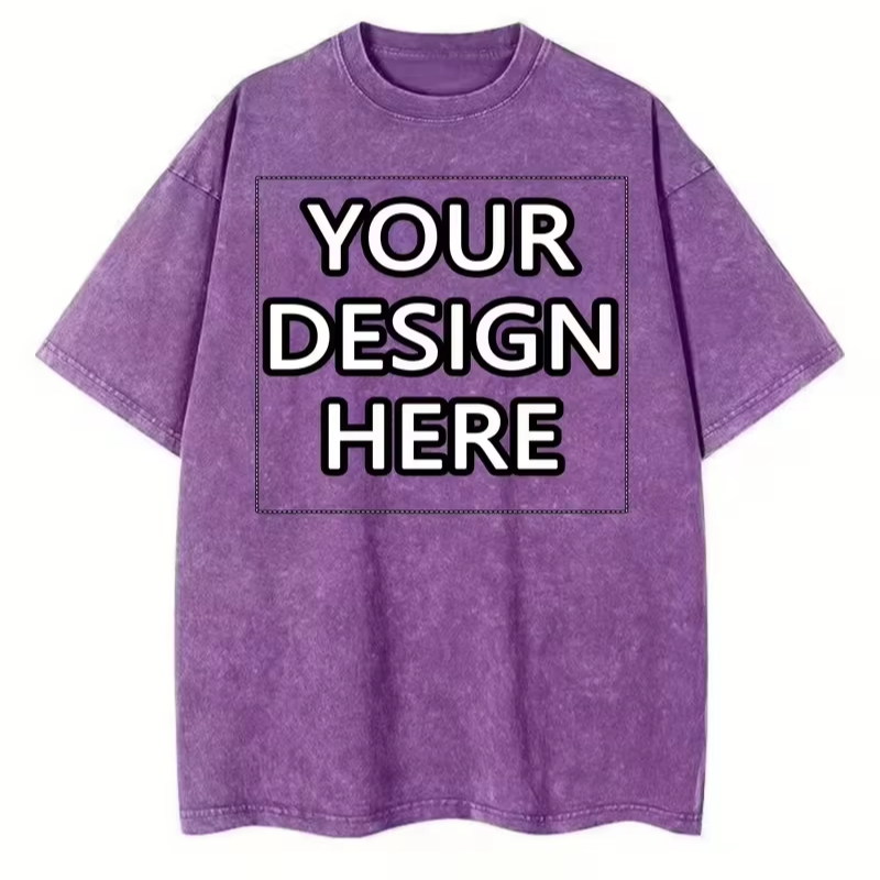 Custom Printed Chest Logo Personalized Front Silk Screen Printed Turtleneck Men's Washed Aged 100% Cotton T-Shirt 240g Jersey