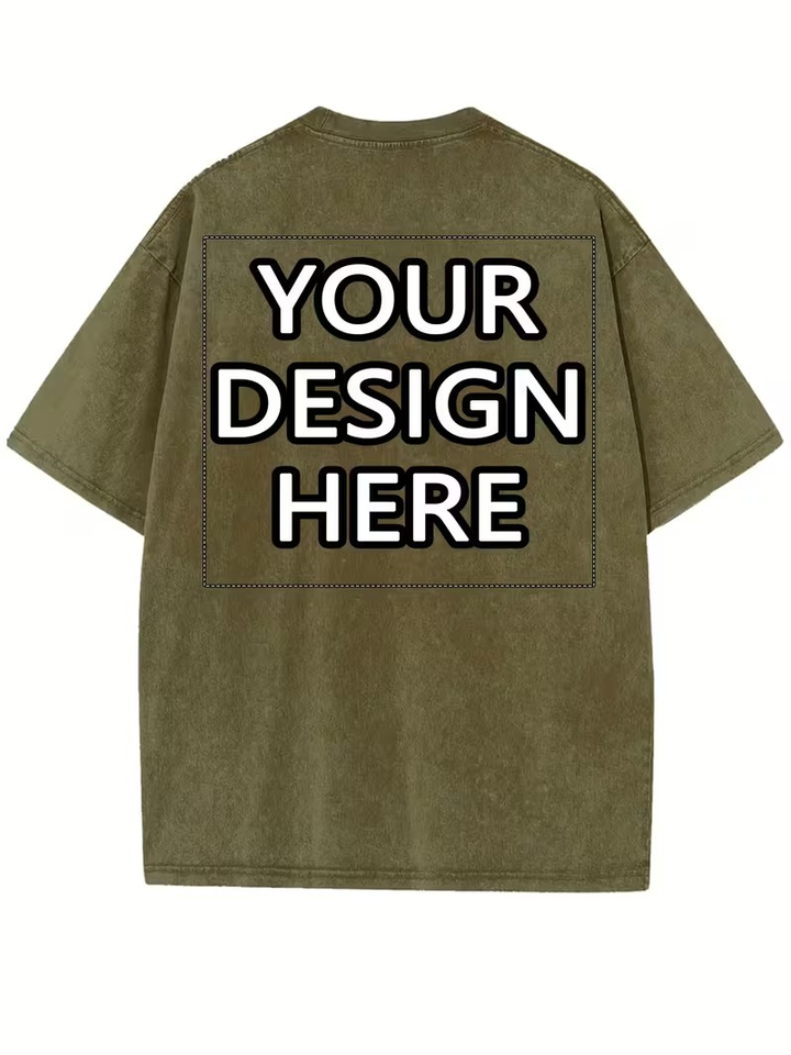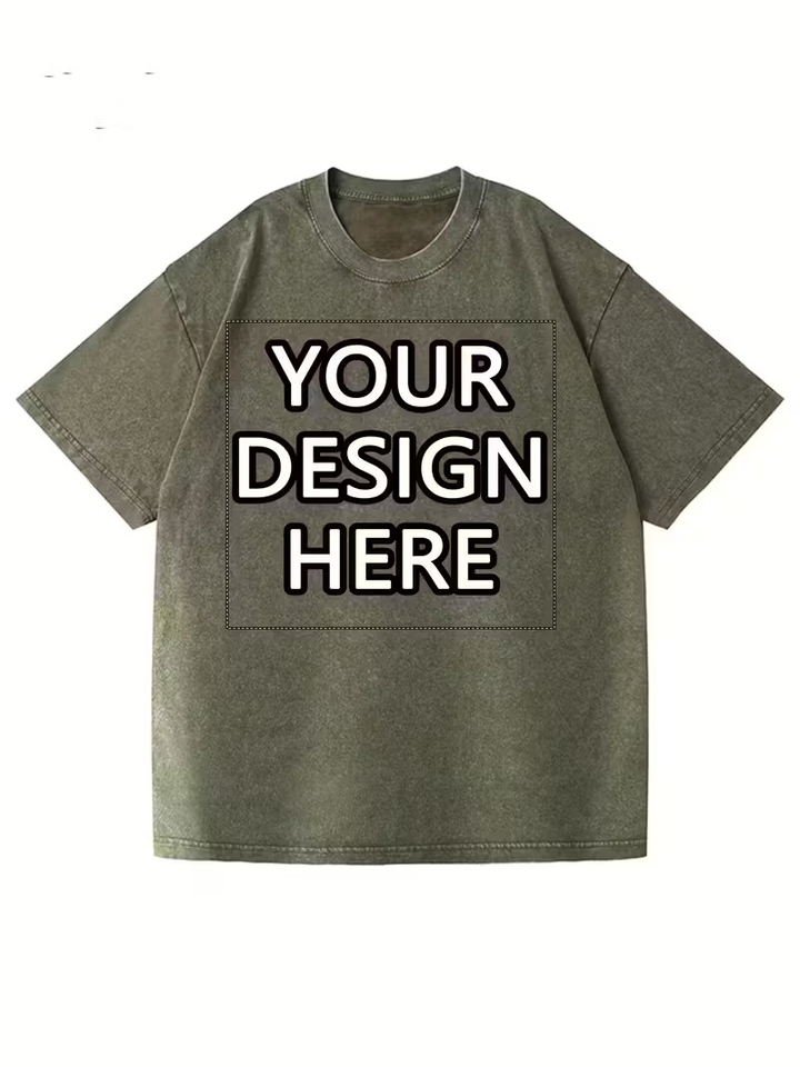 Custom Printed Chest Logo Personalized Front Silk Screen Printed Formal Short Sleeve Turtleneck Men's Washed Aged 100% T-Shirt