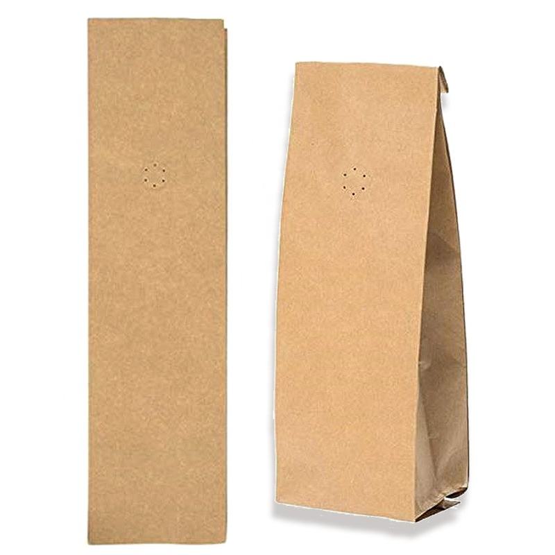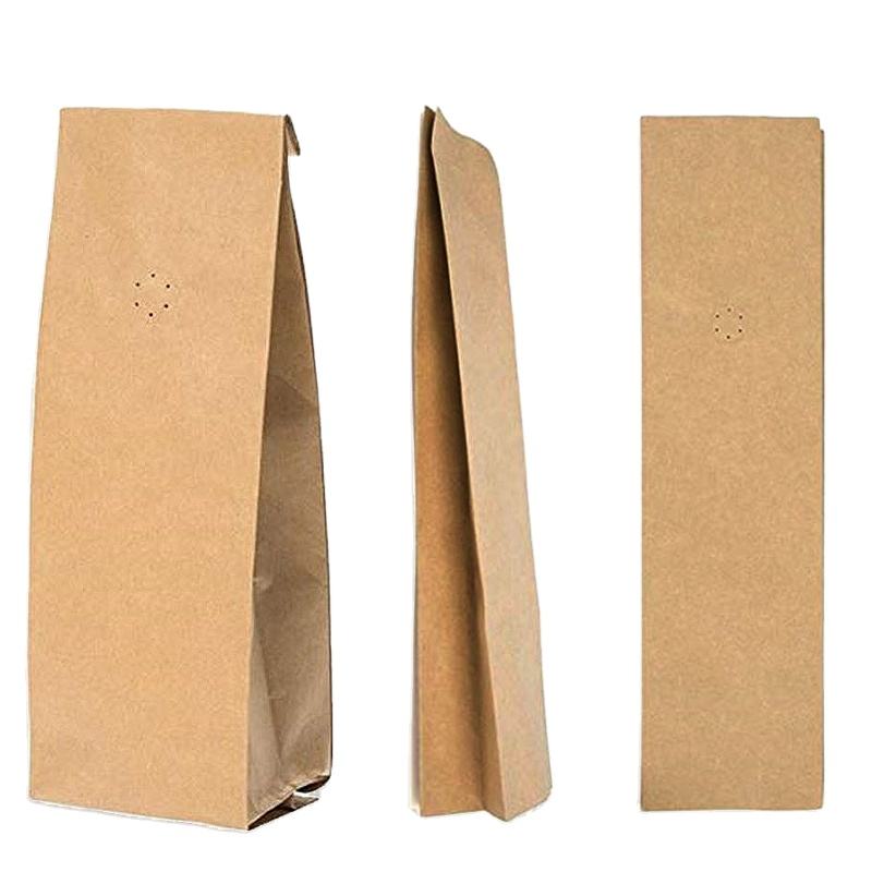 Bolsas de café de papel Kraft de primera calidad con fondo plano, bolsa de pie compostable impresa personalizada con válvula y cremallera