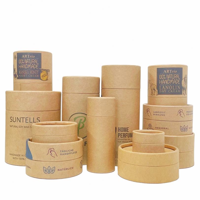 Caja Cilíndrica Impresa Personalizada, Empaque Creativo de Tubo de Papel Kraft Redondo para Cosméticos