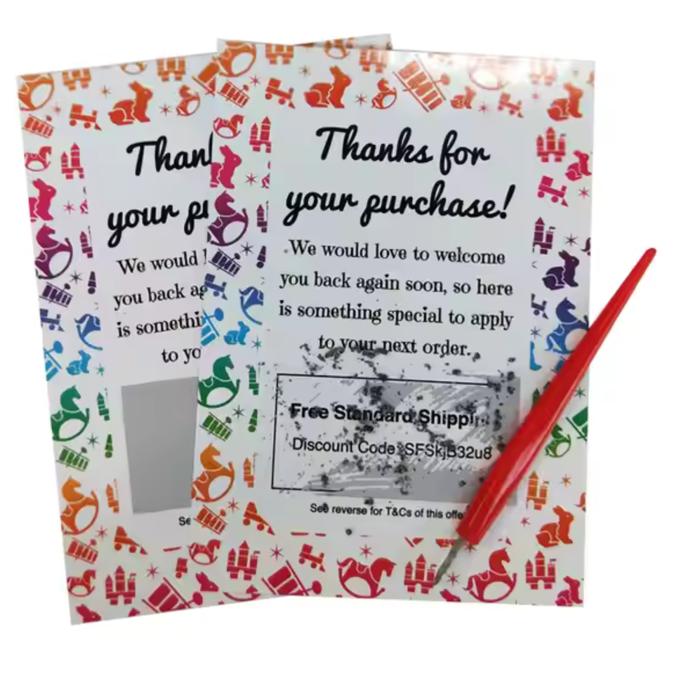 Diseño personalizado impreso divertido papel de tarjeta para rascar ganar reglas de juego rollo embalaje tarjetas para rascar