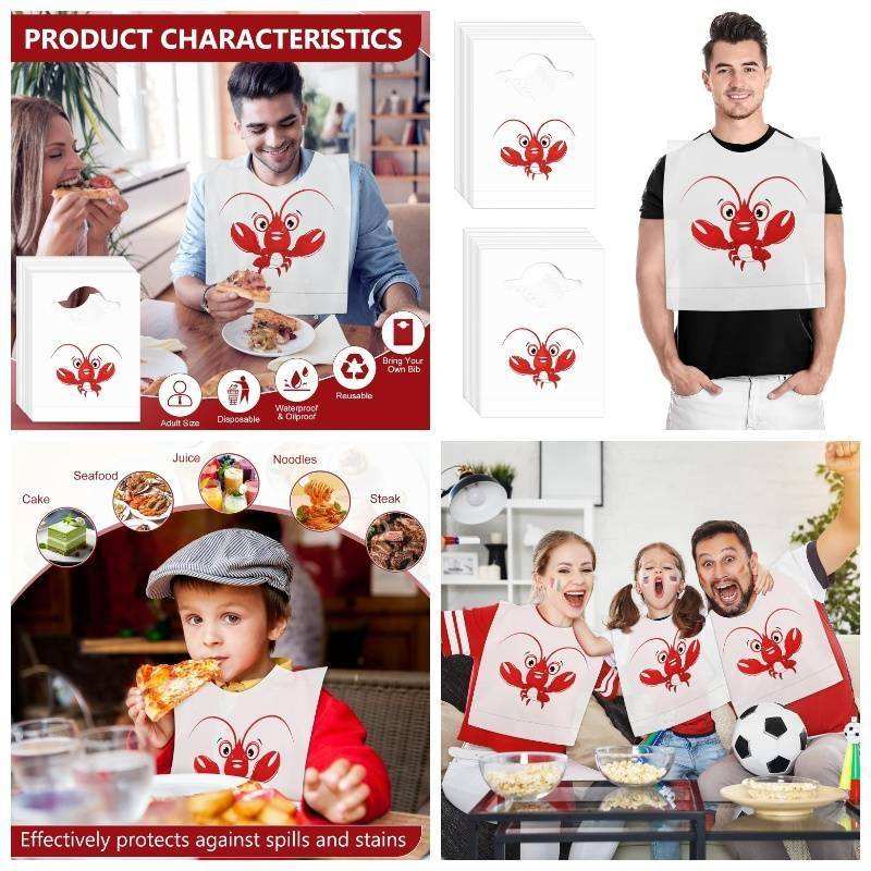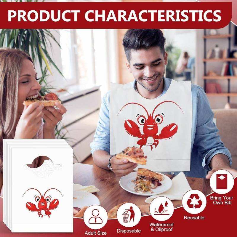 Baberos Desechables de Plástico Impresos Personalizados para Adultos, Delantal Impermeable para Restaurante con Diseño de Mariscos, Langosta y Cangrejo