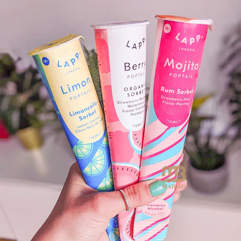 Tubo exprimidor de polo de hielo de doble pared impreso personalizado 90mL y 110ml todos los tamaños para helado en relieve Calippo Uso de galletas de azúcar
