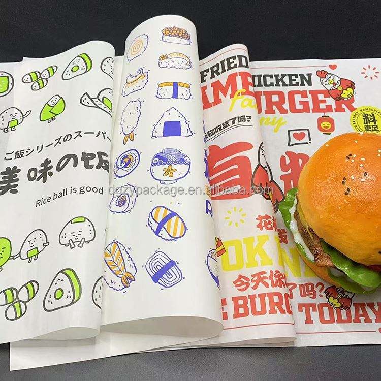 Papel de Envolver Alimentos Ecológico, Impreso Personalizado, Resistente a la Grasa, de Grado Alimenticio, para Hamburguesas, Sándwiches, Pan, Galletas, Azúcar, Gelatina, Paletas